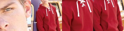 - Raw-edge hood opening, pocket seams, cuffs, waistband, zipper placket and side seams