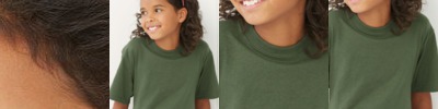 - 5.5 oz., 100% combed ringspun cotton jersey (Heathers 97/3), 22 singles